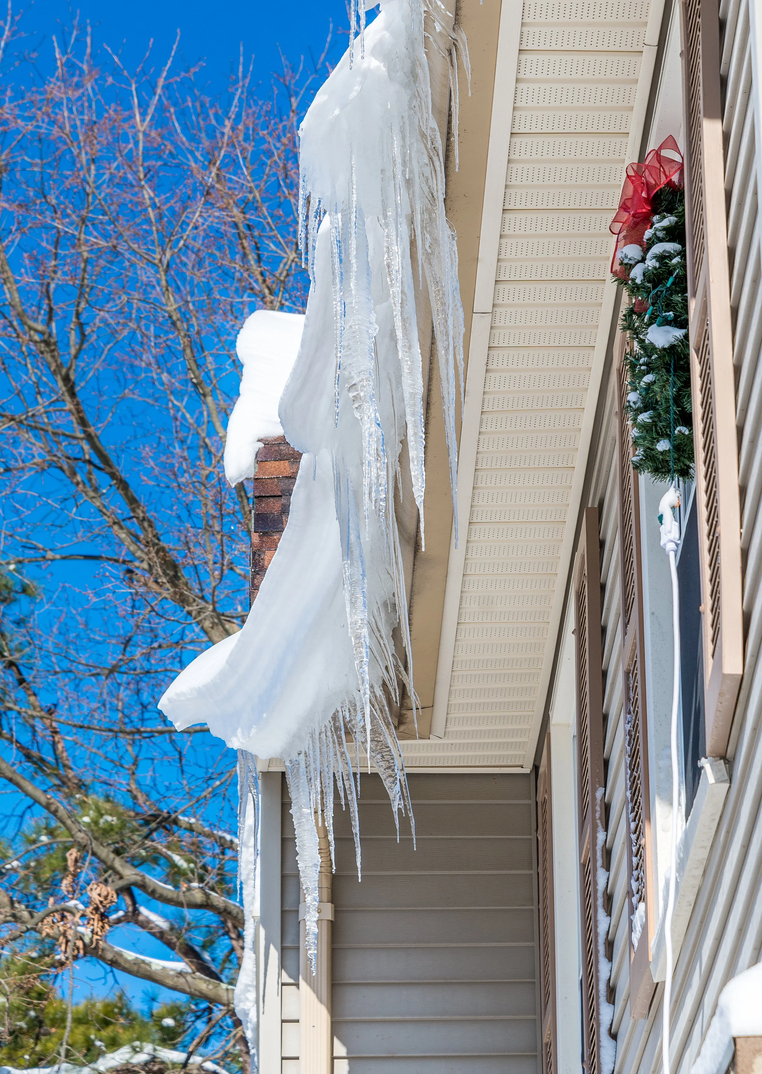Beyond the obvious hazards associated with falling ice, ice buildups or ice dams that can cause damage to your roof, interior walls and begin to flood living spaces. Before they become a problem, let us help you stay ice dam free this winter. Emergency ice dam removal is also available.